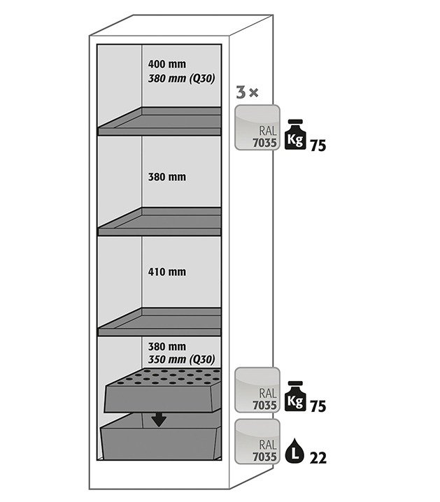 Tulekindel kemikaalikapp asecos Q-CLASSIC-30 (30 min) – süttivate vedelike hoiustamiseks